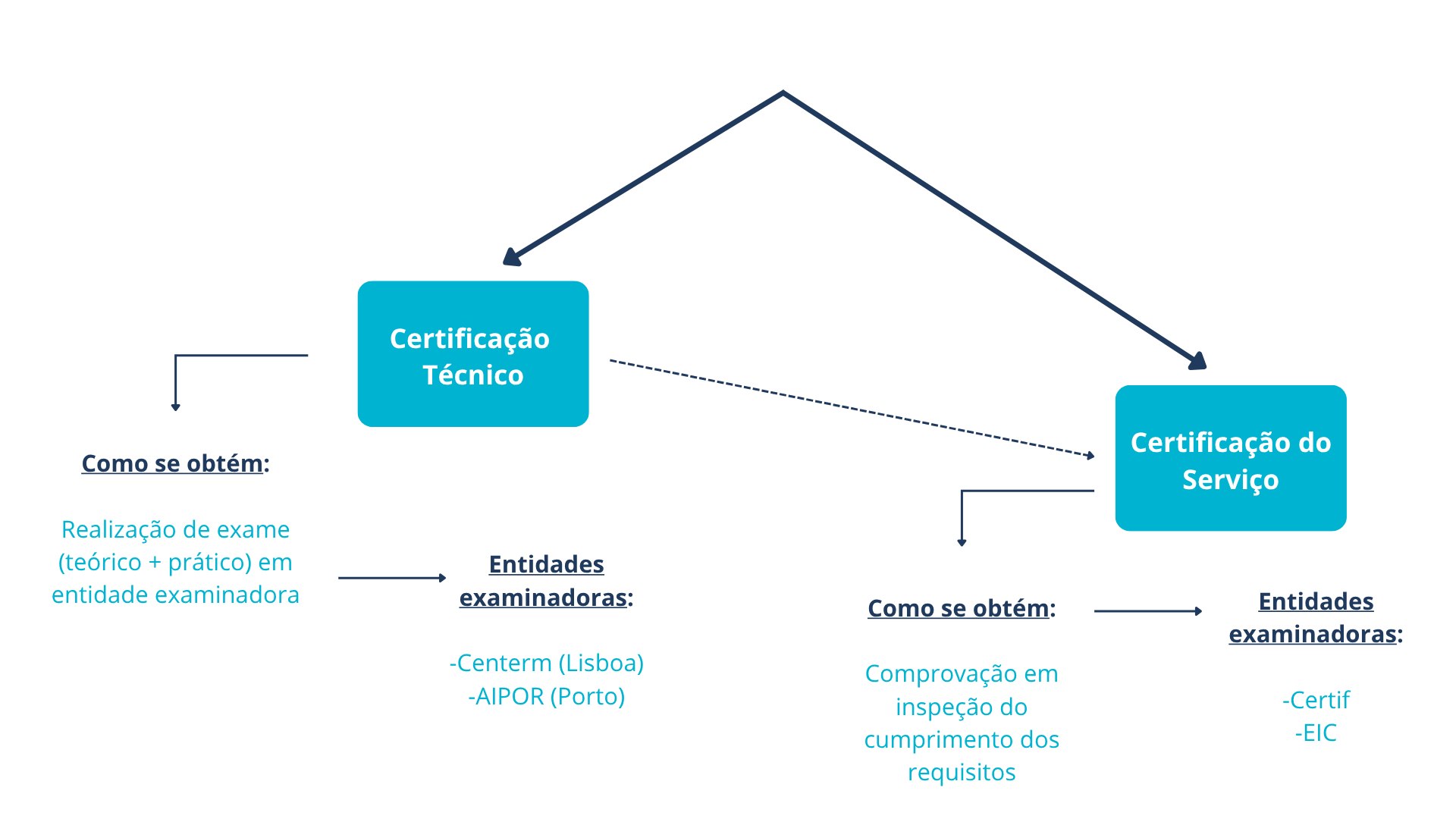 Em primeiro, a certificação enquanto técnico que se obtém mediante a realização de um exame teórico-prático junto de uma entidade examinadora acreditada.